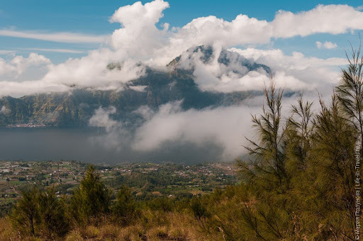 и гору Абанг в облаках,